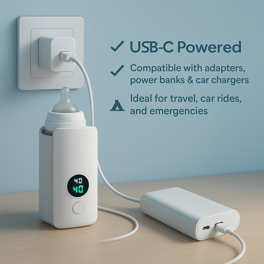 Compact and USB-powered, this travel bottle warmer fits easily in your diaper bag, making it perfect for night feeds, car rides, or vacations.