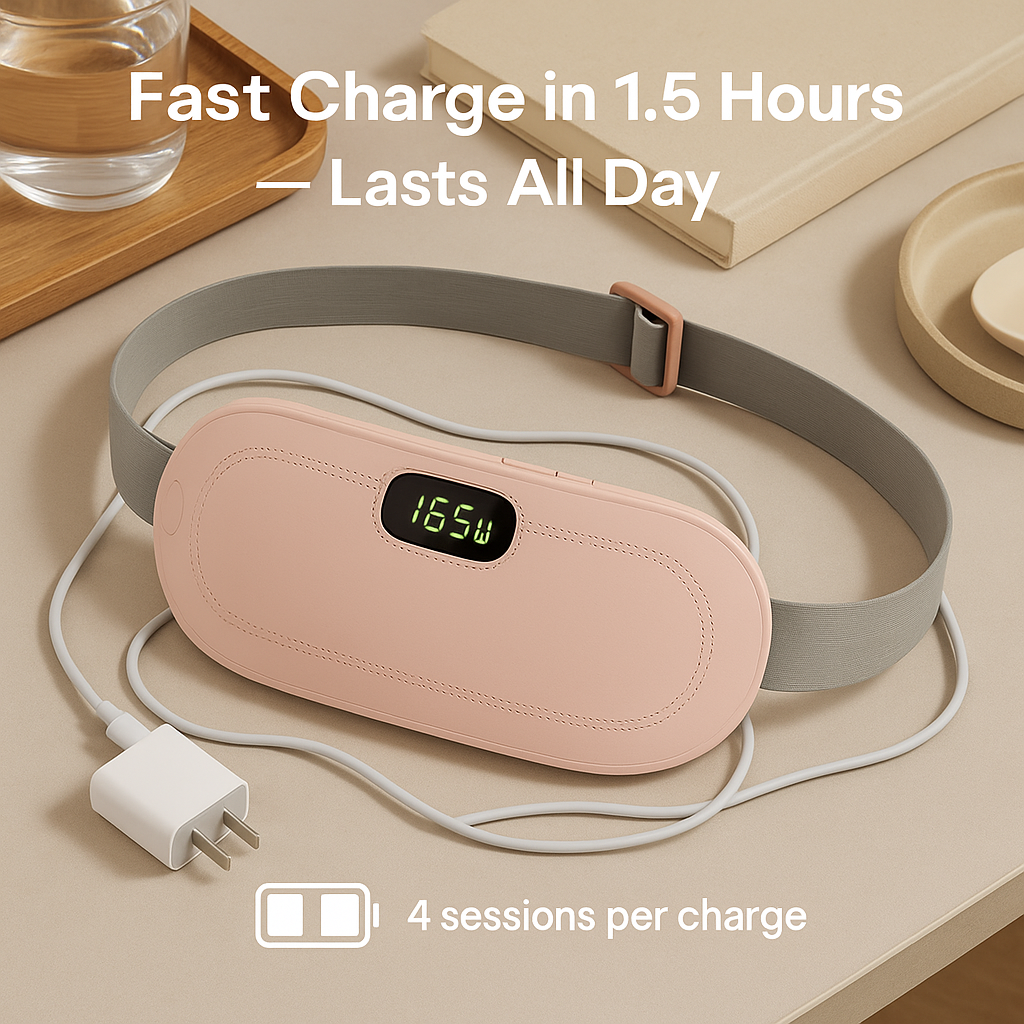 Absolutely! This pad is designed with portability in mind. Its compact design, adjustable strap, and wireless functionality let you wear it discreetly under clothes whether you're at your desk, commuting, or lounging at home. With a fast 1.5-hour charge time and 4 sessions per charge, it keeps up with your busy day.
