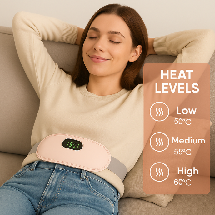 Built with a long-lasting battery, this rechargeable heating pad for cramps lets you move freely while staying warm. Ideal for work, travel, or relaxing at home, it’s the ultimate wireless heating belt for menstrual pain.