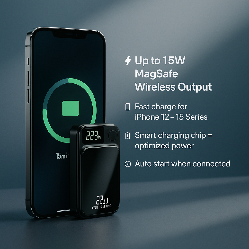 MagSafe power bank | Magnetic wireless charger | Portable phone battery | iPhone magnetic charger | Wireless charging power bank | Slim MagSafe battery pack | Magnetic portable charger for iPhone | Fast charging MagSafe-compatible power bank | Compact magnetic wireless charger with stand | 10,000mAh MagSafe power bank with USB-C | Ultra-slim MagSafe power bank with built-in kickstand and LED display | Qi2-certified magnetic power bank for iPhone 12–16 series | Travel-friendly magnetic wireless charger with USB-C fast charging | High-capacity magnetic power bank with smart temperature control | Lightweight MagSafe-compatible power bank with overcharge protection