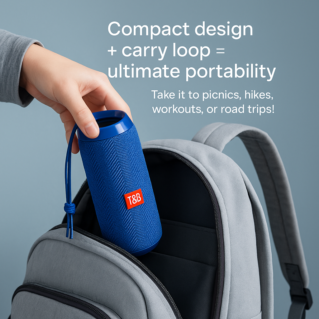 - Compact & Travel-Friendly – Lightweight and easy to carry, this portable wireless speaker fits easily in your bag, making it perfect for road trips, picnics, camping, and outdoor adventures.