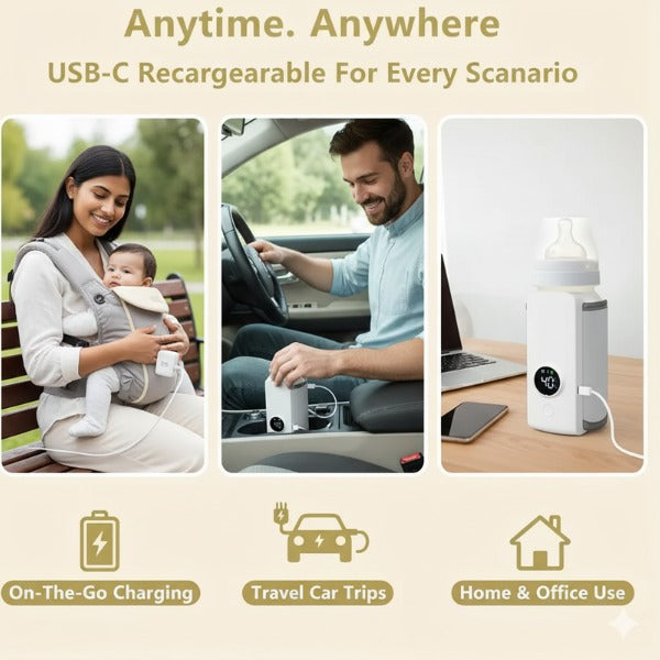 Compact and USB-powered, this travel bottle warmer fits easily in your diaper bag, making it perfect for night feeds, car rides, or vacations.