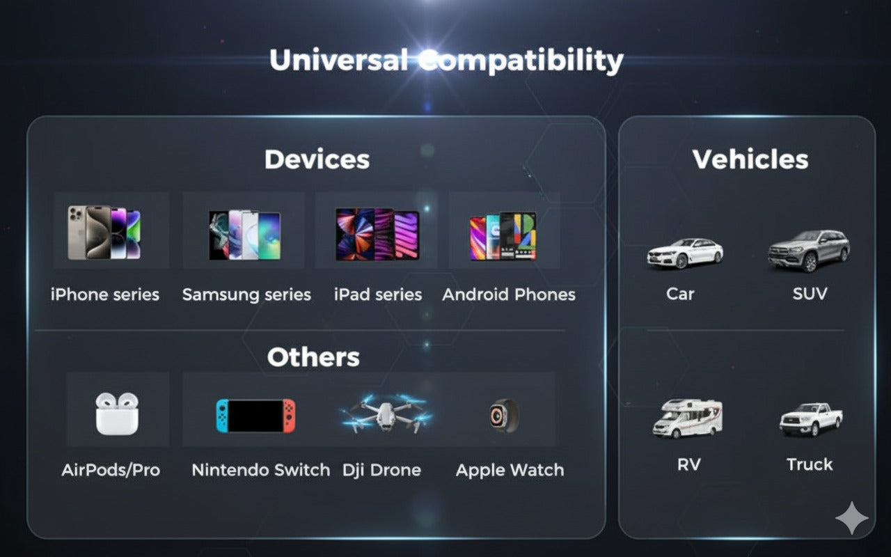 Enjoy speedy charging on the road with the dual-port fast car charger that delivers up to 66W power, powering multiple devices simultaneously without slowdown. Perfect for quick top-ups during your daily commute or long trips.