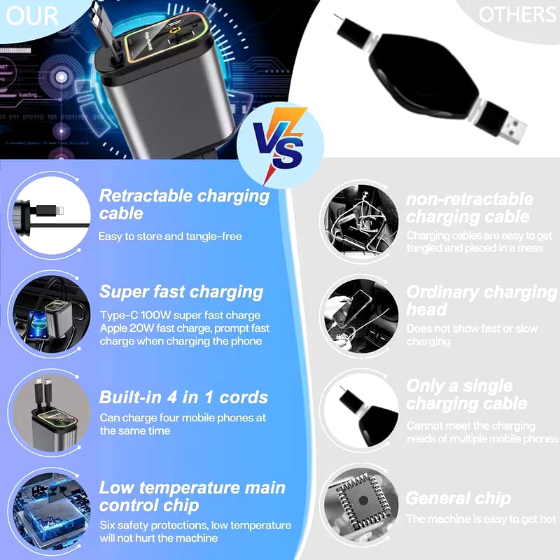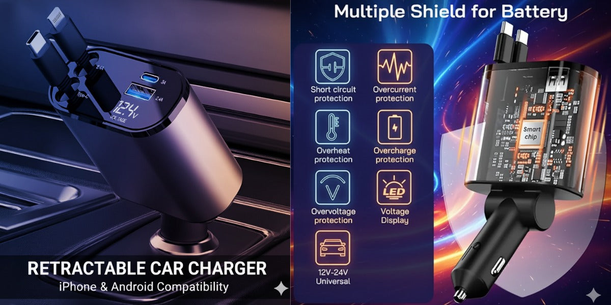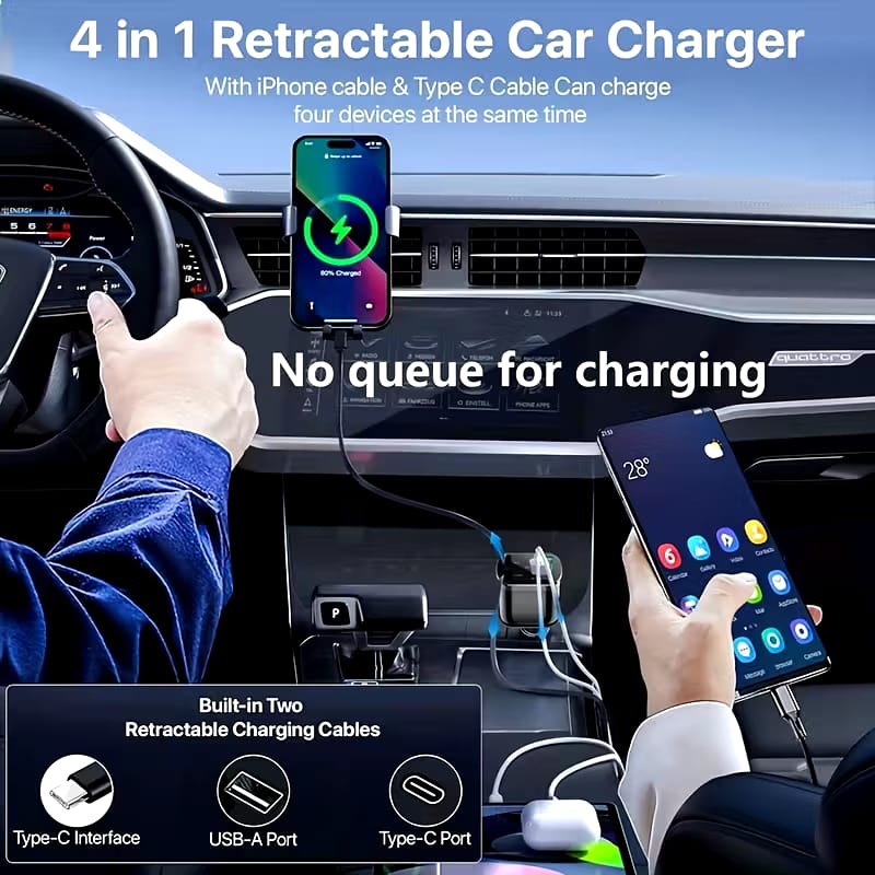 Retractable car charger, 3-in-1 car charging cable, USB-C car charger, Lightning car adapter, Fast car charger, Retractable car charger with dual ports, Compact 3-in-1 car charger for iPhone and Android, Fast-charging retractable cable car adapter, Multi-device car charger with USB-C and Lightning connectors, Universal retractable car charger with tangle-free design, 3-in-1 retractable car charger with USB-C, Lightning, and Micro-USB cables, Dual-port fast car charger with retractable cables for iPhone and Android, Compact retractable car charger with LED voltage display and overcharge protection, Universal retractable car charging station with 66W fast charging and multiple ports, Smart retractable car charger compatible with iPhone 15/14/13/12 and Samsung Galaxy devices