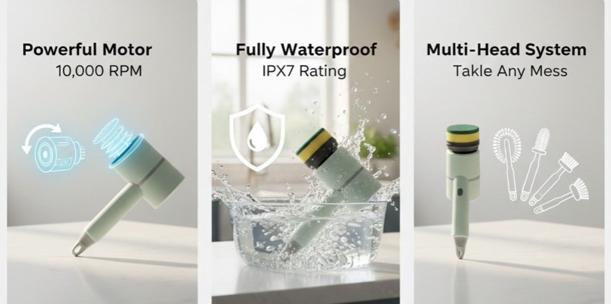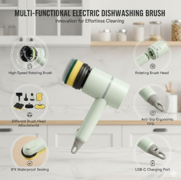 Electric dish scrubber | Handheld cleaning brush | Power scrubber | Cordless dishwashing brush | Kitchen cleaning tool | Multi-purpose electric scrubber | Rechargeable dish cleaning brush | Waterproof handheld scrubber | Electric kitchen brush with interchangeable heads | Automatic dishwashing brush with detachable brush heads | Multi-functional handheld electric dishwashing brush with USB charging | Cordless electric scrubber for dishes, sinks, and countertops | Waterproof electric cleaning brush for kitchen and bathroom surfaces | Rechargeable handheld dish scrubber with multiple brush attachments | High-efficiency electric dishwashing brush for pots, pans, and glassware