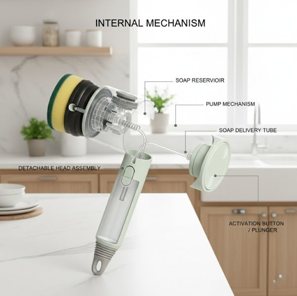 ✅ Automatic dishwashing brush with detachable brush heads for hassle-free cleaning