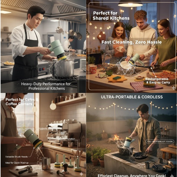 Tired of scrubbing dishes the old-fashioned way? Meet SparkleScrub, the powerful and sleek multi-functional handheld electric dishwashing brush with USB charging that transforms your cleaning routine. Say goodbye to elbow grease and hello to sparkling results—faster, easier, and smarter.